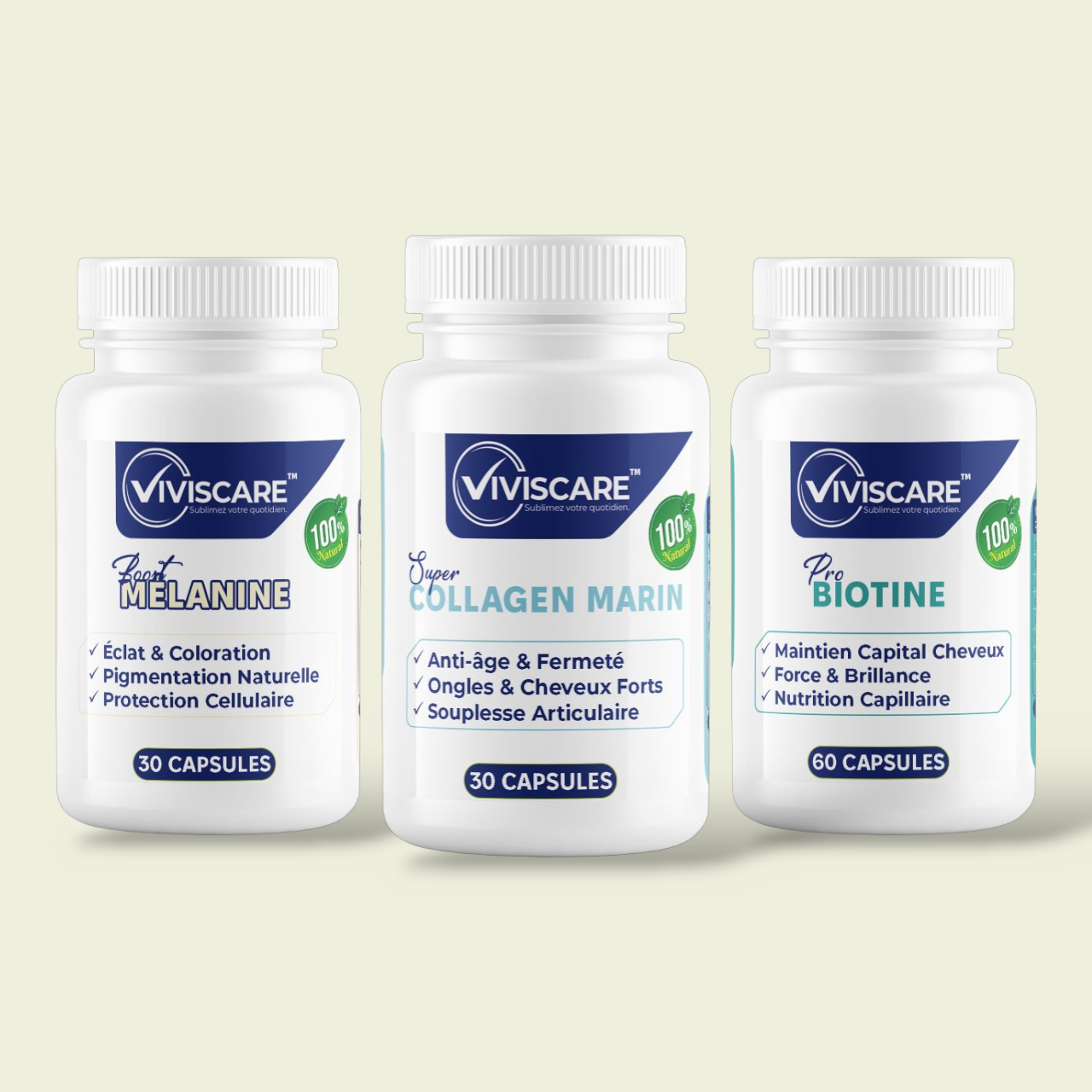 Ce complexe exclusif fusionne l’efficacité de la biotine, du collagène marin et de la mélanine pour offrir une solution « Beauté et Santé » intégrale. Tandis que le duo collagène-biotine agit en profondeur pour redensifier les tissus, lisser les rides et fortifier les phanères, la mélanine déploie un bouclier biologique contre le stress oxydatif et les agressions solaires, sublimant ainsi l’éclat naturel du teint. Cette synergie puissante ne se limite pas à l’apparence : elle soutient également votre dynamisme quotidien et votre mobilité articulaire, garantissant un rajeunissement visible et une énergie durable.
